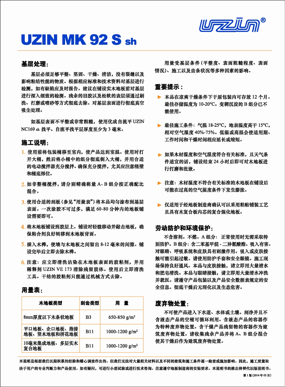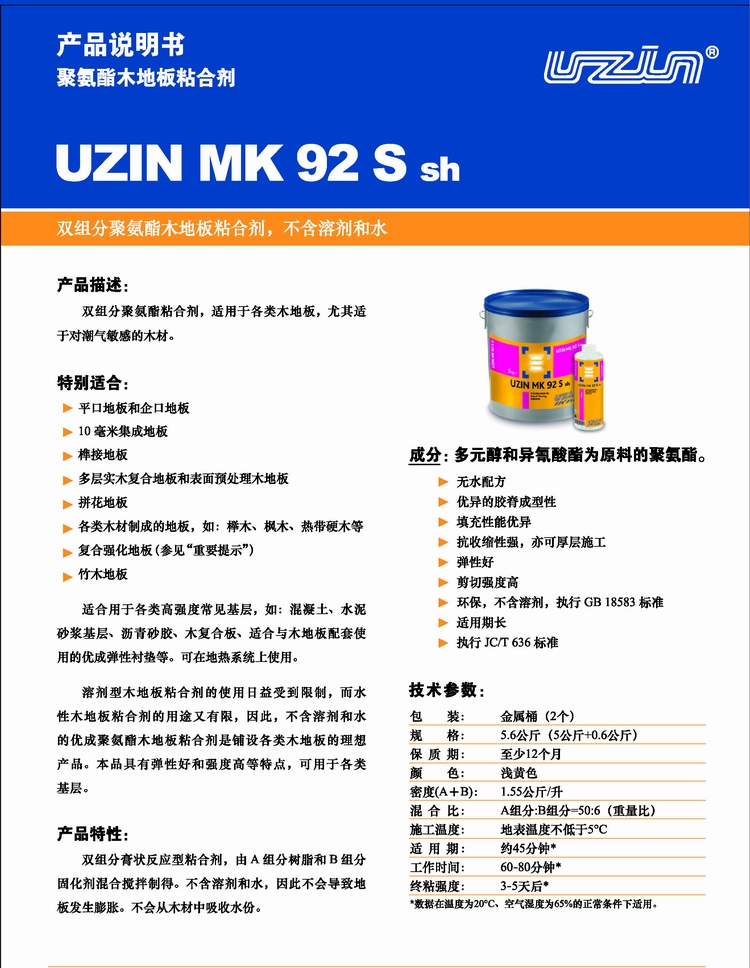 優(yōu)成MK92S聚氨酯木地板粘合劑