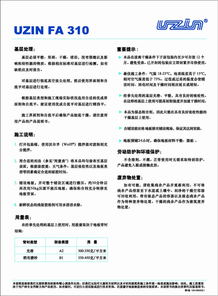 優(yōu)成FA310塊材地板膠粘劑