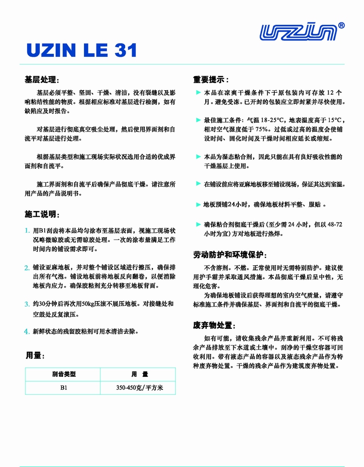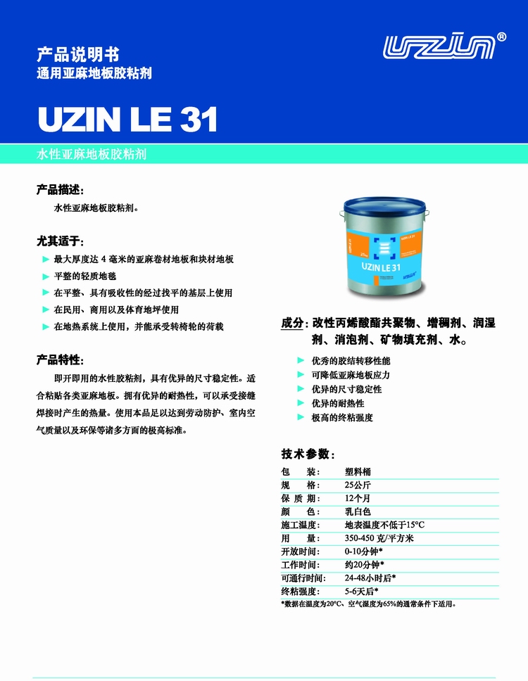 優(yōu)成LE31通用亞麻地板膠粘劑