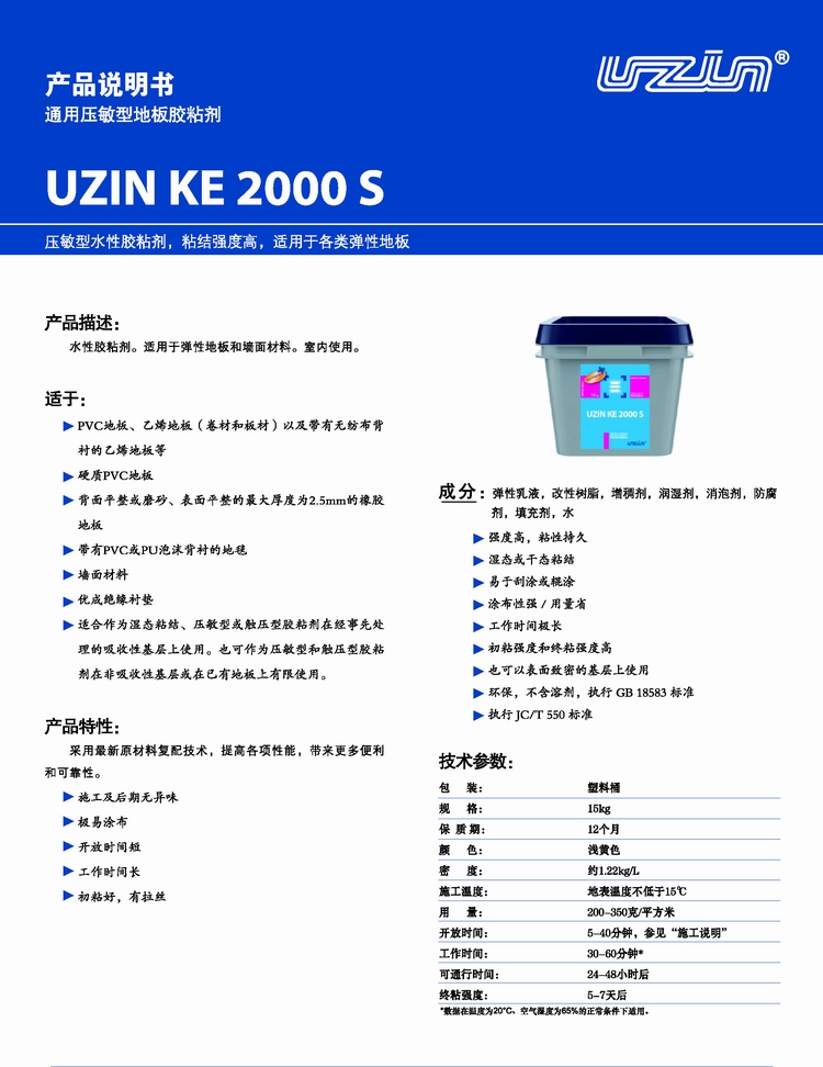 優(yōu)成KE2000S通用壓敏型地板膠粘劑