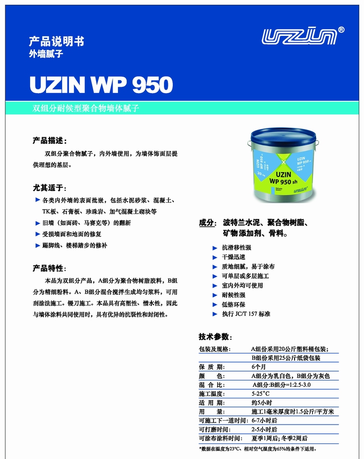 優(yōu)成WP950耐候型聚合物墻體膩?zhàn)?span id="l5v5pj5" class="en">